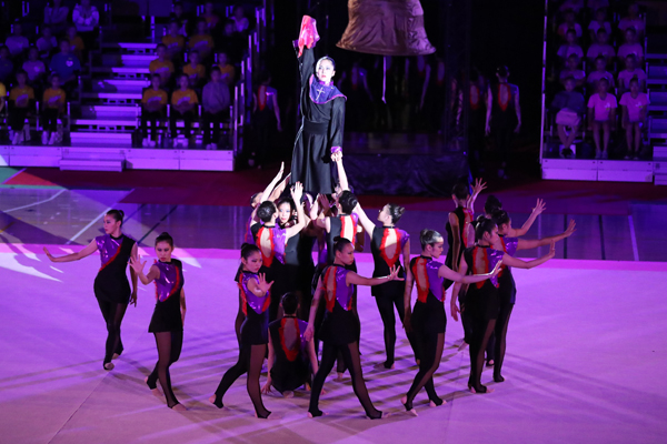 まずは、日本女子体育大学AGGチームの演技からスタート。今年の世界選手権大会で5位、国別大会で銅メダルを獲得した演技を披露しました。